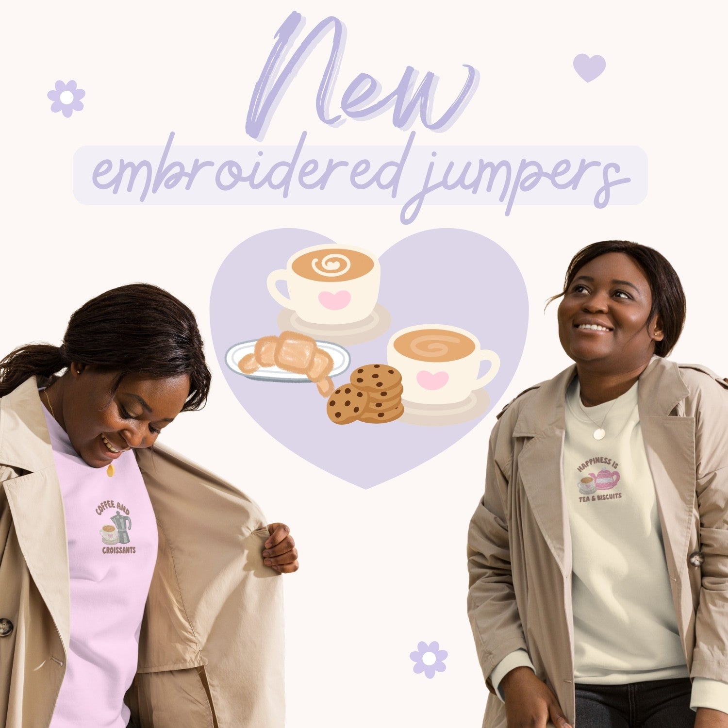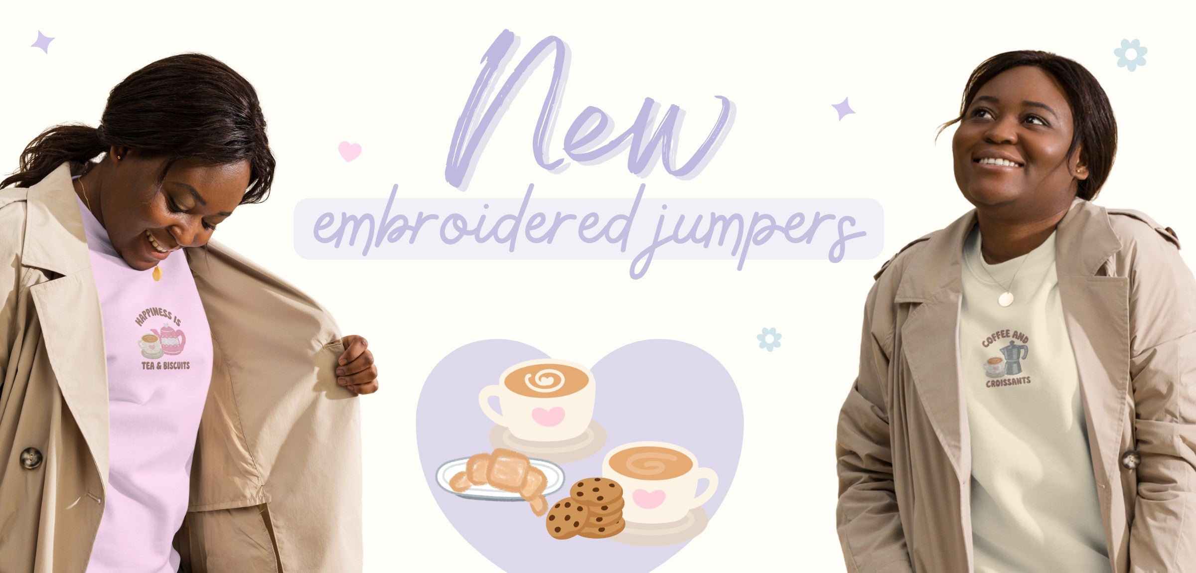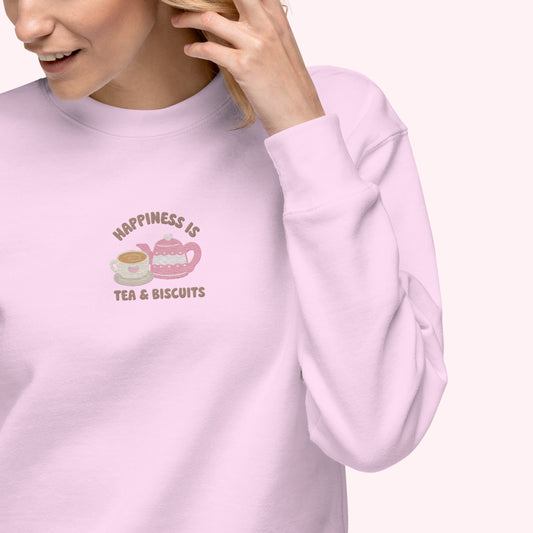 Happiness Is Tea & Biscuits Embroidered Sweater.
