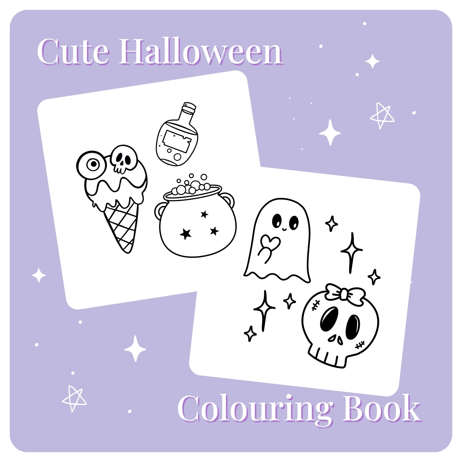 Bold and easy colouring in designs for all ages. Super cute ghosts, spiders, pumpkins, potions and sweet treats.