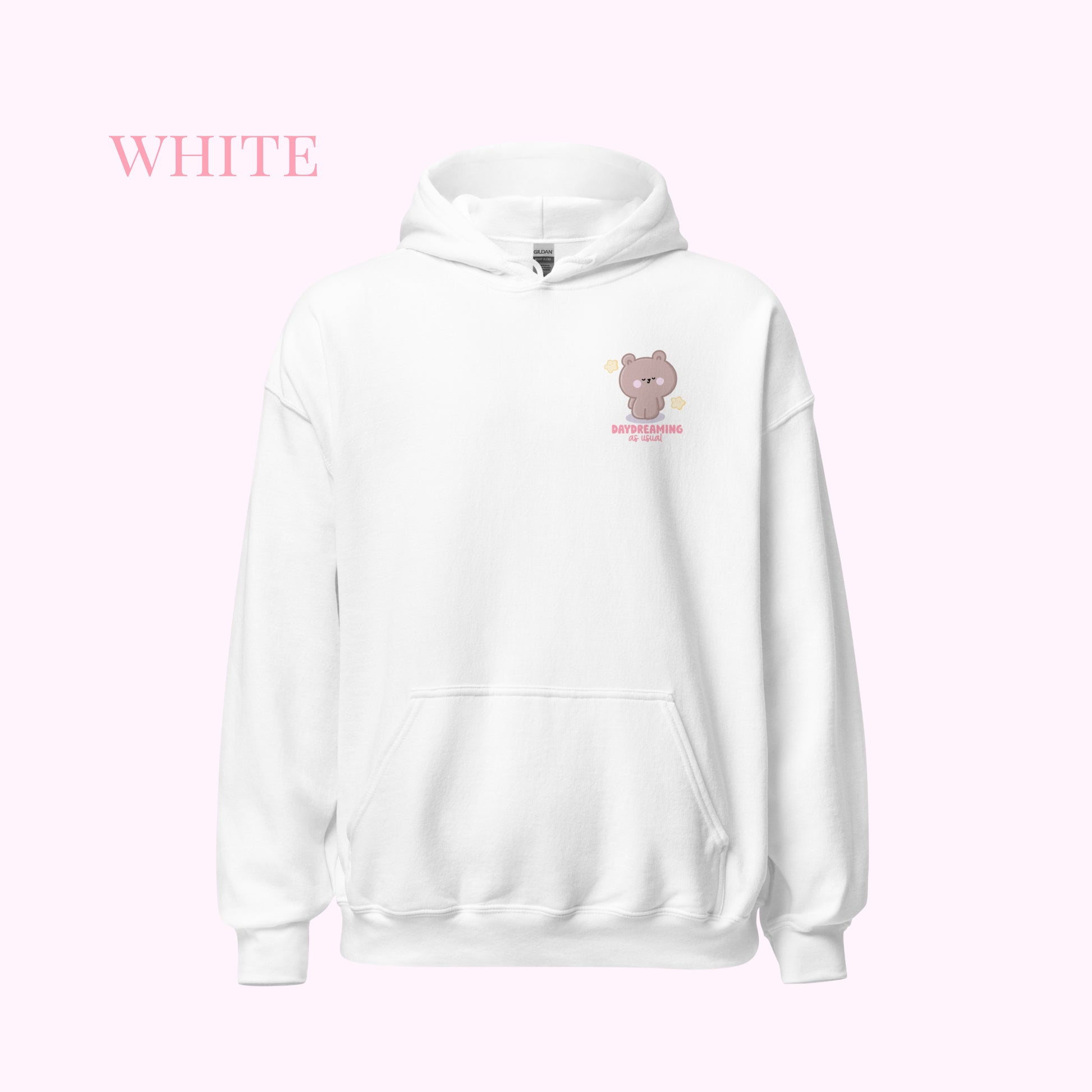 Super cute daydreaming bear printed hoodie. Everyone needs a cozy go-to hoodie to curl up in, so go for one that's soft, smooth, and stylish. It's the perfect choice for cooler evenings!