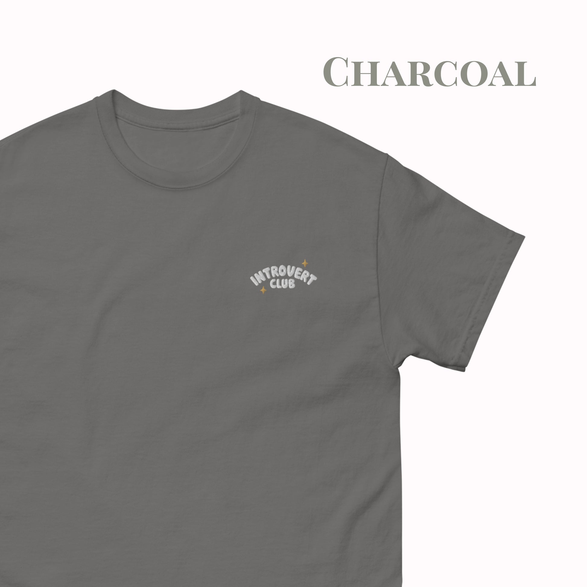 This Introvert Club embroidered t-shirt is made for those who love subtle details and calm, comfortable fashion. Featuring a small “Introvert Club” logo embroidered on the left chest, this tee is minimalist, timeless, and easy to wear with any outfit.