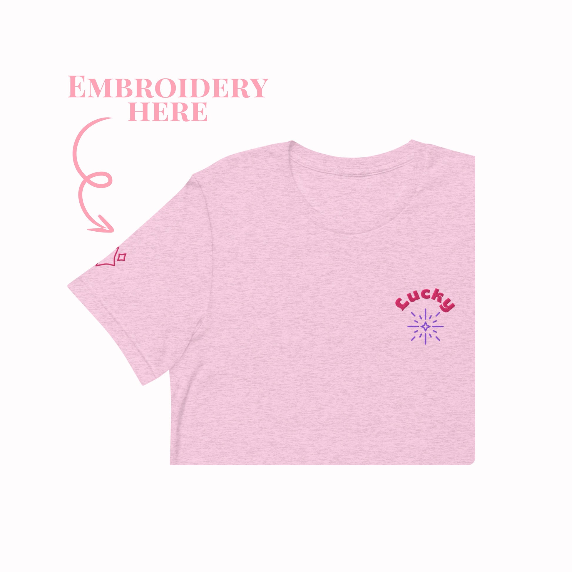 Everyone needs the perfect t-shirt to complement an everyday, laid-back look. This lightweight cotton tee will keep you comfy and looking smart. Embroidered Lucky Star Design and embroidered stars on the sleeve.