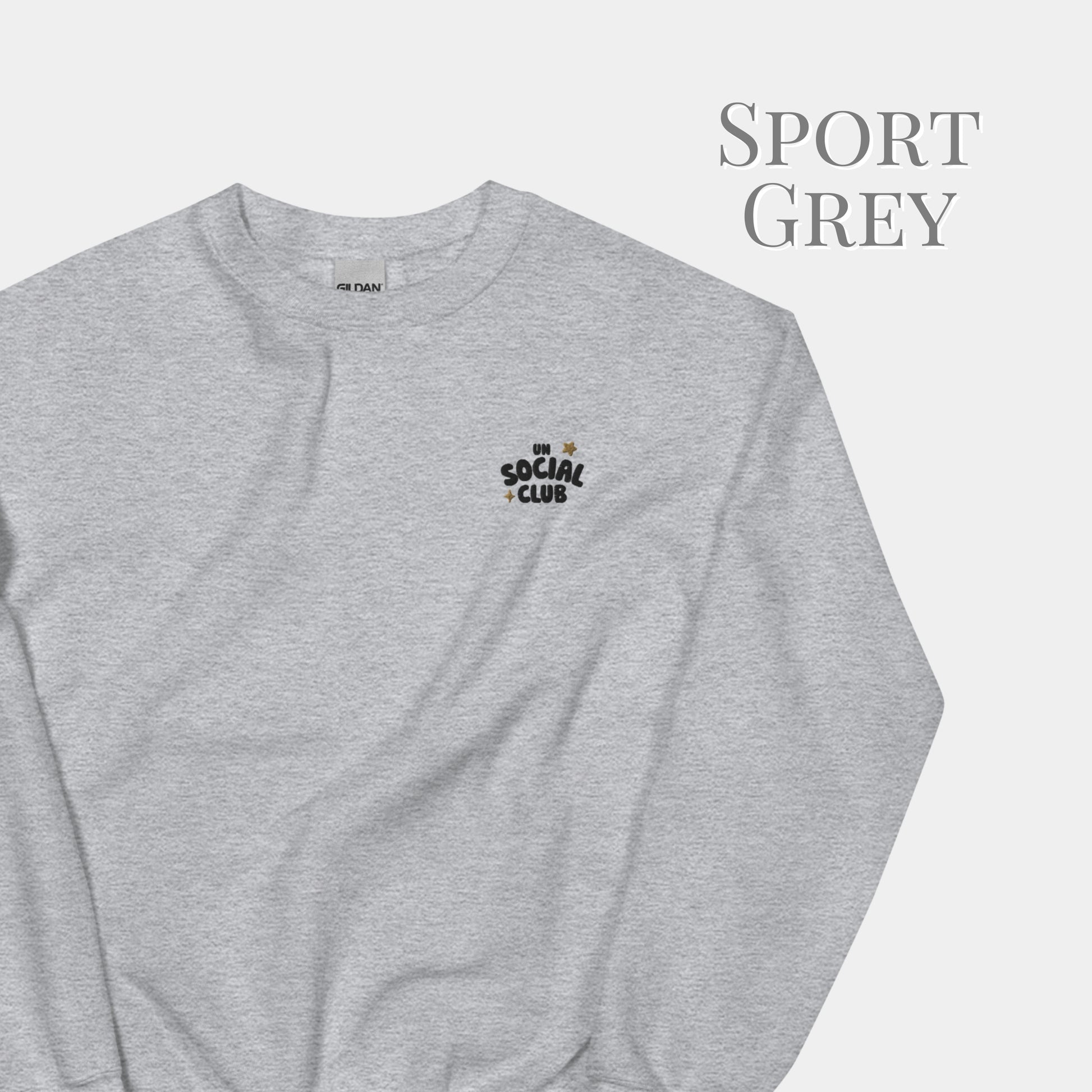 This cozy embroidered jumper features āun social clubā stitched on the left chest, a subtle little badge for shy people, introverts, readers, and anyone who prefers quiet nights over loud crowds. Itās minimal, cute, and says everything without saying too much.